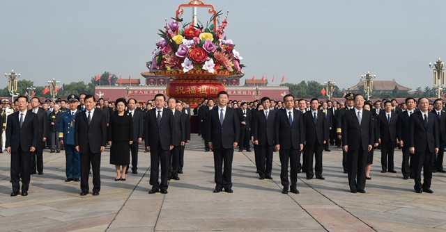 2016年9月30日,習近平等黨和國家領導人向人民英雄敬獻花籃。