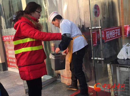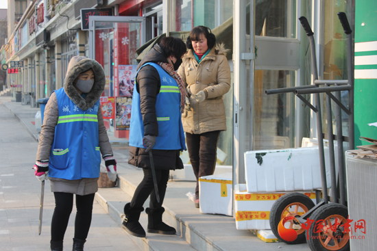 走街串巷、鏟除小廣告、發(fā)現(xiàn)小煤爐、整治占道經(jīng)營和流動商販等創(chuàng)文創(chuàng)衛(wèi)工作成為網(wǎng)格員楊鳴燕每天重復(fù)的工作。從早上6點開始巡邏到晚上11點,楊鳴燕和隊友們?nèi)旌虻倪M入網(wǎng)格開展整治工作,挨家挨戶的進行冬防和環(huán)保知識宣傳,勸導(dǎo)制止居民使用有煙煤及木柴,鼓勵居民在指定的煤場購買新型引火煤。