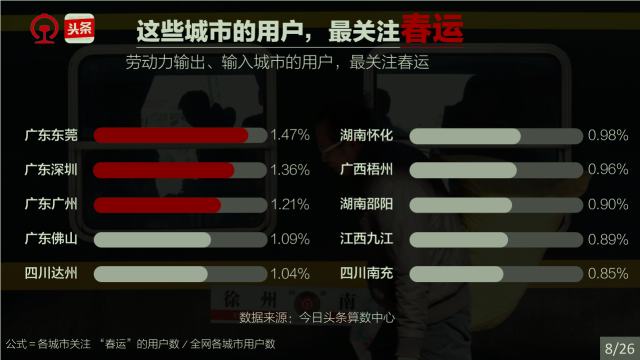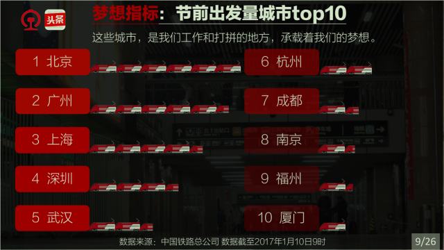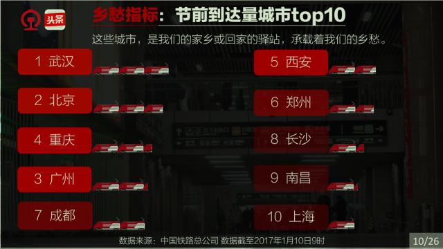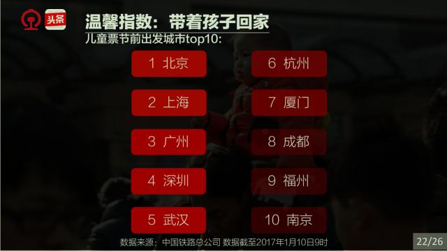 春運(yùn)是社會(huì),春運(yùn)是文化,春運(yùn)縮影國(guó)與家。一年一度的春運(yùn),承載著國(guó)人的情感、目光和腳步。他們?cè)陉P(guān)注著什么,他們的出行有什么規(guī)律,哪些城市、哪些人群又和春運(yùn)關(guān)聯(lián)度最高。中國(guó)鐵路和今日頭條通過(guò)對(duì)2017年春運(yùn)鐵路購(gòu)票數(shù)據(jù)和今日頭條客戶端閱讀數(shù)據(jù)的分析,告訴你一個(gè)縮影國(guó)與家的春運(yùn)。