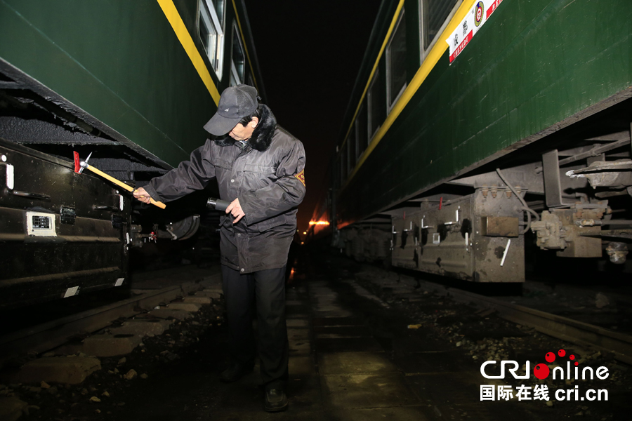 12日傍晚,此次列車的值乘人員對列車各部位進行檢查,從臥具、備品、餐廚具、消耗品到取暖鍋爐、車輪等都一一細致檢查保證萬無一失。