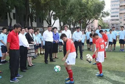 2016年9月,習近平重回母校八一學校,看到小足球隊員正在進行帶球過人訓練,笑著對大家說,50多年前我就在這個地方踢過球。那時候還是土場子。他帶著自豪地回憶說,“我們的球隊在北京市比賽中拿過冠軍,在全國比賽得了第四名。”