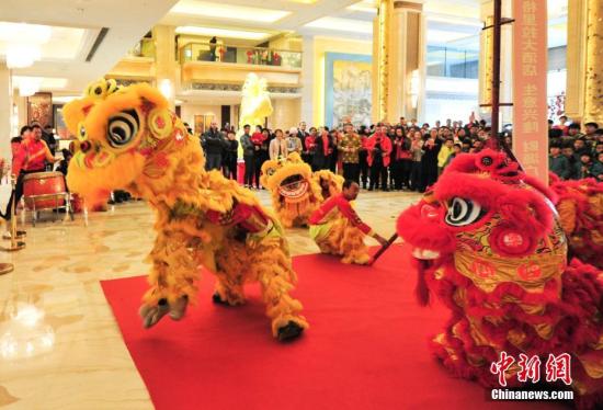 1月28日,遼寧沈陽,市民在觀看舞獅表演。當(dāng)日,是中國農(nóng)歷大年初一,在沈陽一酒店內(nèi)上演舞獅表演鬧新春。中新社記者 于海洋 攝