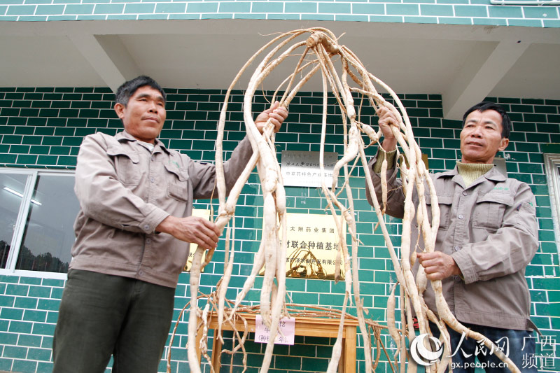 黃翰早的幸福生活與一種叫“牛大力”的中藥材有關(guān)。2013年,借著精準(zhǔn)扶貧的東風(fēng),邕寧區(qū)邀請(qǐng)南寧廣澤農(nóng)業(yè)開(kāi)發(fā)有限公司進(jìn)駐那樓鎮(zhèn)屯了村,建設(shè)“廣西道地中藥休閑養(yǎng)生產(chǎn)業(yè)示范園——壯藥大觀園”牛大力種植示范基地,計(jì)劃用這種被稱(chēng)為“南方人參”的藥食兩用藥材發(fā)展規(guī)模化種植,帶動(dòng)當(dāng)農(nóng)民脫貧致富。