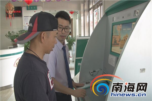 中國(guó)農(nóng)業(yè)銀行海南省分行省行級(jí)青年崗位能手王劍為客戶辦理業(yè)務(wù)。