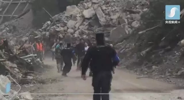 9日16時許,官兵們行至神仙池路口附近,遇見大批從震中撤離出來的群眾。突然,道路一側的山體開始晃動,揚塵卷著大小碎石從高處滾落,砸向驚恐的人群。