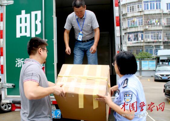 圖為民警通過郵政把愛心物品寄出