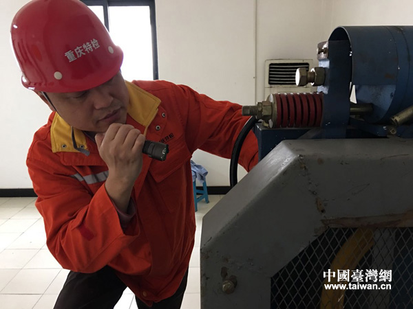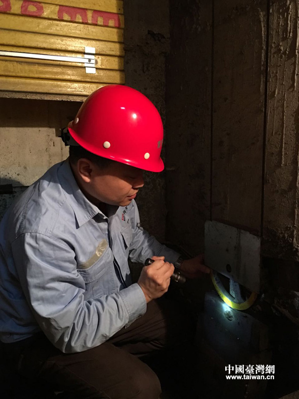 張東平在進行電梯故障檢測與維修。(重慶市特種設備檢測研究院供圖 中國臺灣網(wǎng)發(fā))