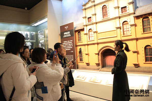 記者們認真聽講解員介紹朱德的成長經歷。(中國臺灣網 李寧 攝)