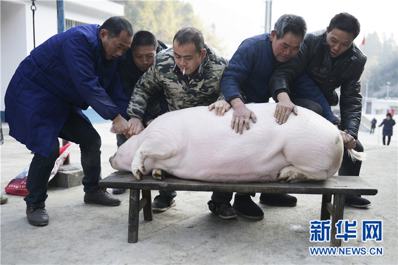 圖為殺年豬的場景。新華網 歐陽小潔 攝