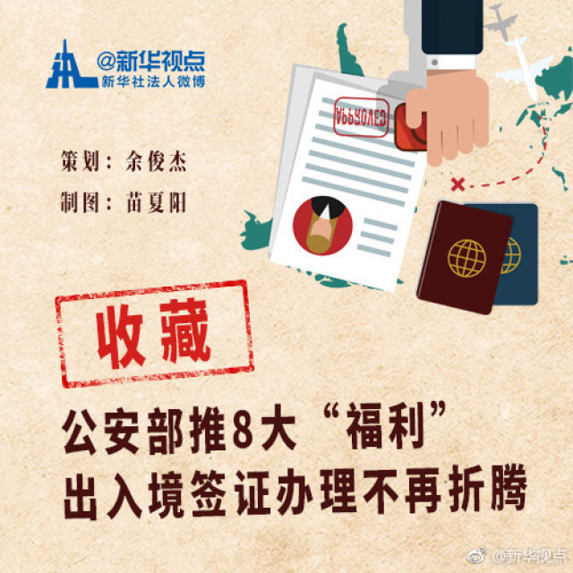 新華網北京1月23日電 公安部將于2月1日起施行8大便民舉措,對于出入境的小伙伴們來說,不但能簡化手續,還可以節省開支。看看都有哪些福利!(記者余俊杰 據新華社“新華視點”微博報道)