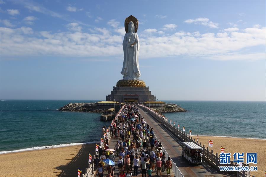 2月18日,游客在海南省三亞市南山文化旅游區觀光游覽。經國家旅游局數據中心綜合測算,今年春節全國共接待游客3.86億人次,同比增長12.1%,實現旅游收入4750億元,同比增長12.6%。新華社發(陳文武 攝)