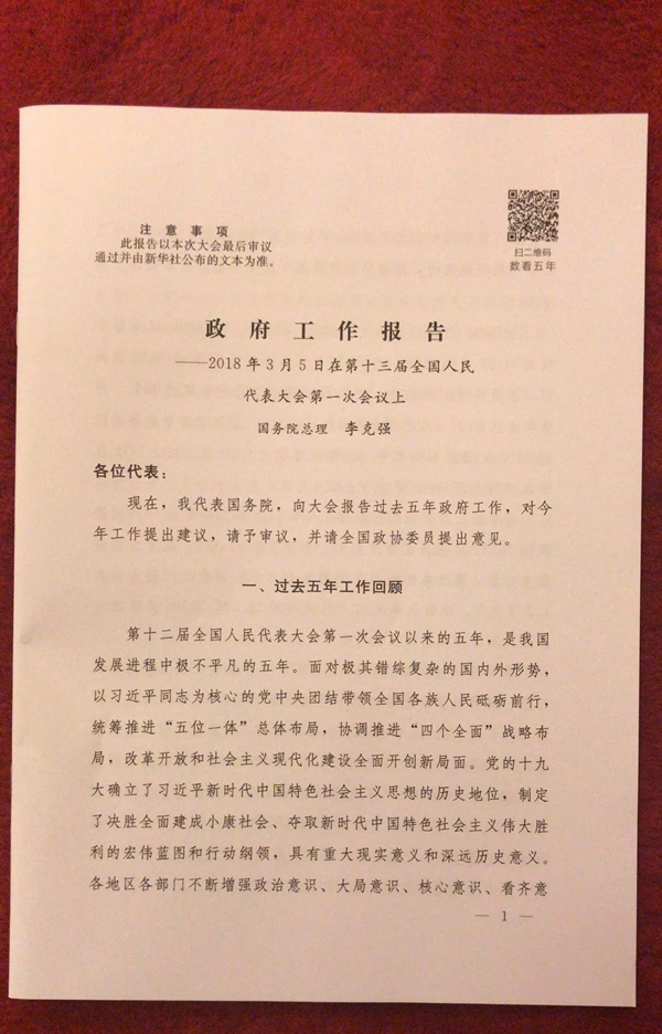 今年的政府工作報(bào)告首頁上,又出現(xiàn)了一個小小的二維碼。