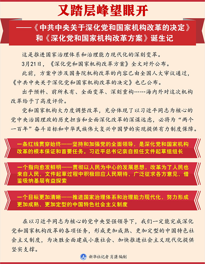 3月21日,《深化黨和國家機構改革方案》全文對外公布。