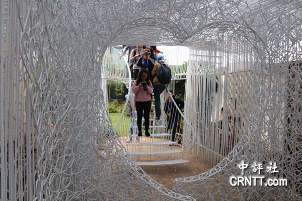 園區內的特色休閑場所—全部由鋼筋搭建設計而成。(圖片來源:中評社)