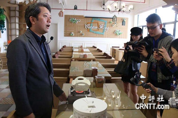 麥可將文創園區的獨一無二之處是什么?兩岸媒體走進園區內一探究竟。首先,來自臺灣的地方文創“名片”——紙箱王創意市集十分抓人眼球,用紙做成的雕塑、桌椅、餐具、以及各式各樣精致的工藝品、不怕水洗的配飾、甚至還可以做成不怕火燒的紙火鍋,總之,這里的一切都是用紙做成的。