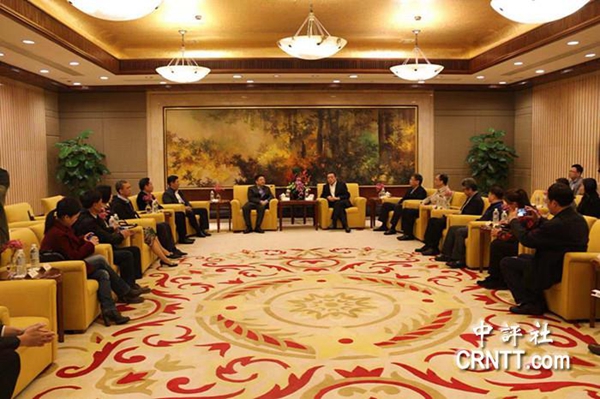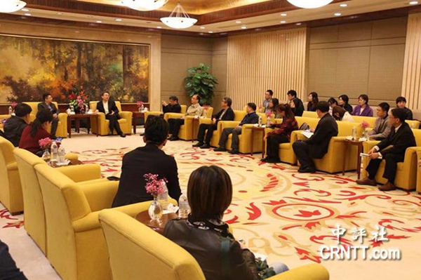 會見兩岸網絡新媒體參訪團現場。(圖片來源:中評社)