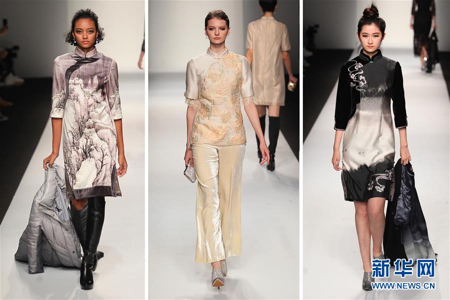 在2018年3月28日至4月3日舉行的2018秋冬上海時裝周期間,刺繡、盤扣、水墨等中國傳統服飾元素和文化符號出現在多個品牌時裝發布會上,成為本屆時裝周的亮點。(新華社記者 杜瀟逸 攝)