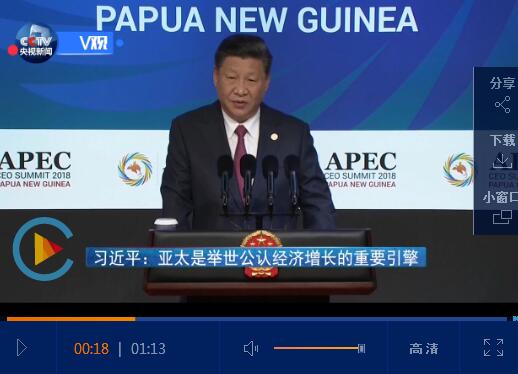 習近平:亞太地區有著亞太經合組織這樣的成功故事,亞太經合組織的誕生和發展順應了開放融合的歷史潮流,順應了亞太地區謀求發展的強烈愿望,順應了各國人民攜手應對挑戰的共同需要。亞太的開放合作不僅激蕩著太平洋,也活躍了世界經濟的海洋,如今的亞太是全球最具增長活力和發展潛力的經濟板塊,也是舉世公認的世界經濟增長的一個重要引擎。