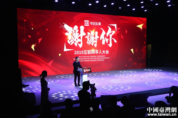 中國臺灣網1月18日北京訊 (記者 尹賽楠)1月17日,今日頭條“謝謝你”2019互聯網尋人大會在北京舉行。中國公安部刑偵局副局長陳士渠、中國民政部社會事務司副司長劉濤、中國移動集團發展戰略部處長文雪蓮、中國移動集團新聞中心處長付宇光、字節跳動副總裁張羽、今日頭條副總編輯徐一龍等嘉賓出席了活動。