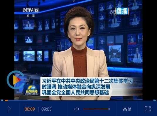 央視網消息(新聞聯播):中共中央政治局1月25日上午就全媒體時代和媒體融合發展舉行第十二次集體學習。中共中央總書記習近平在主持學習時強調,推動媒體融合發展、建設全媒體成為我們面臨的一項緊迫課題。要運用信息革命成果,推動媒體融合向縱深發展,做大做強主流輿論,鞏固全黨全國人民團結奮斗的共同思想基礎,為實現“兩個一百年”奮斗目標、實現中華民族偉大復興的中國夢提供強大精神力量和輿論支持。