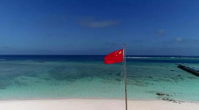 △鮮艷的五星紅旗在三沙島礁飄揚(yáng)