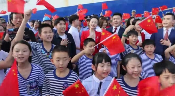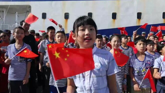 三沙市永興學(xué)校小學(xué)生胡楚涵和她的同學(xué)們、三沙衛(wèi)視主持人團(tuán)、“三沙1號(hào)”船工作人員、駐島工作人員、漁民依次加入演唱,清脆稚嫩的童聲與深情的歌聲交融,伴著海風(fēng),伴著朝陽,這專屬于中國人的旋律緩緩流淌。激昂的歌聲、揮動(dòng)的國旗將碼頭渲染成了激情澎湃的“紅色”海洋,讓在場的每顆中國心都熱血沸騰。