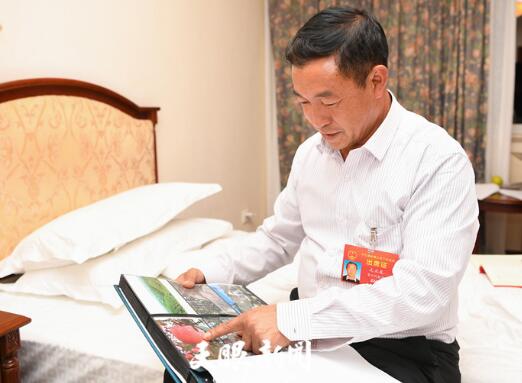 全國(guó)人大代表、赫章縣海雀村黨支部書(shū)記文正友正在整理一組照片。