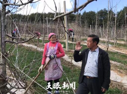 文正友查看蘋(píng)果林除草情況