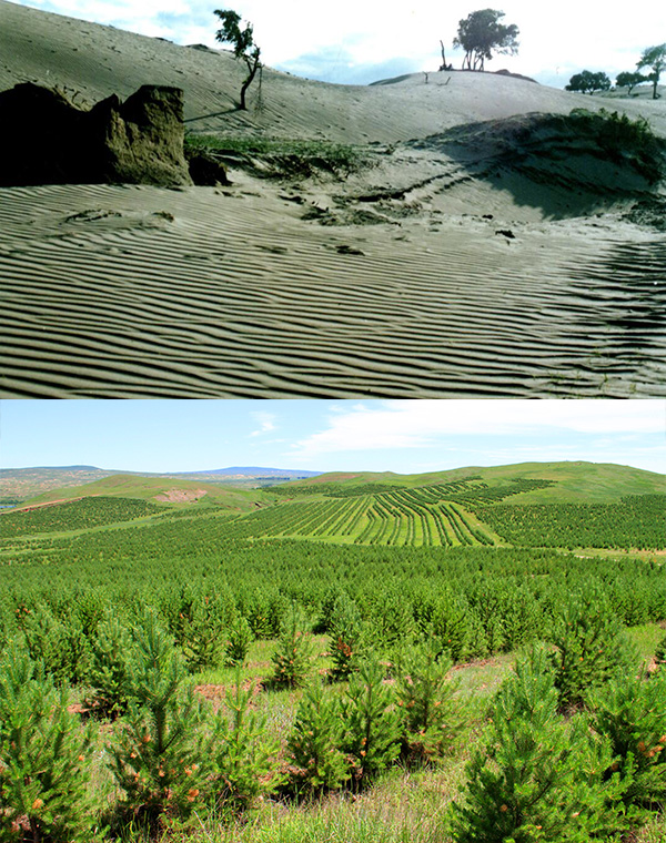 2000年,飽受風沙之苦的多倫縣啟動了京津風沙源治理工程,大規模實施林業生態重點工程,一手抓種樹,一手抓禁牧,“ 飛、封、造、禁、移、調”多措并舉綜合治理沙化土地。