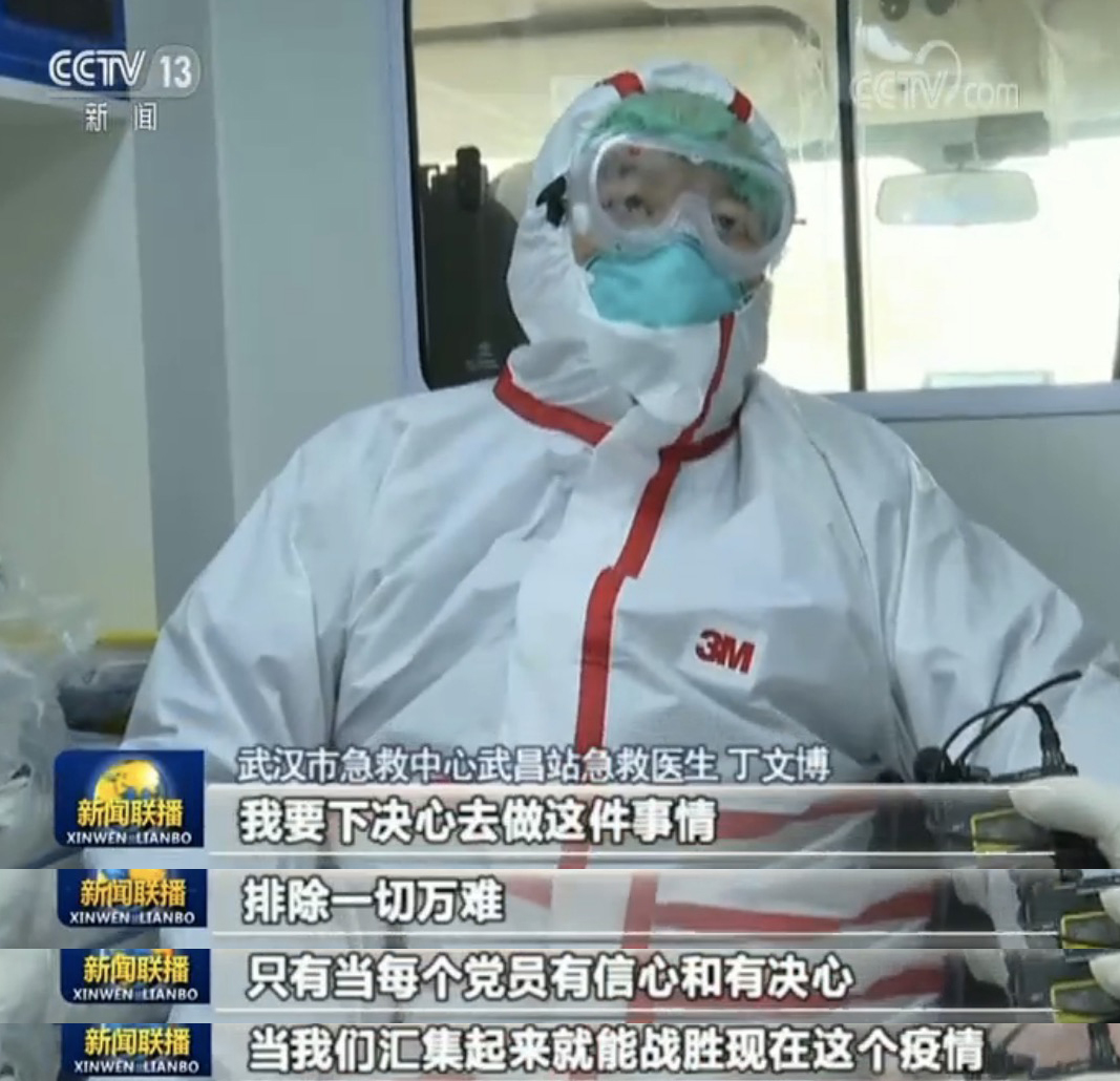 3日早上,急救醫生丁文博接診了一位71歲的患者,老伴兒已確診新型冠狀病毒感染的肺炎,她又突然昏厥并伴有發熱,丁文博一面安撫家屬,一面迅速將老婆婆抬上救護車送到醫院。