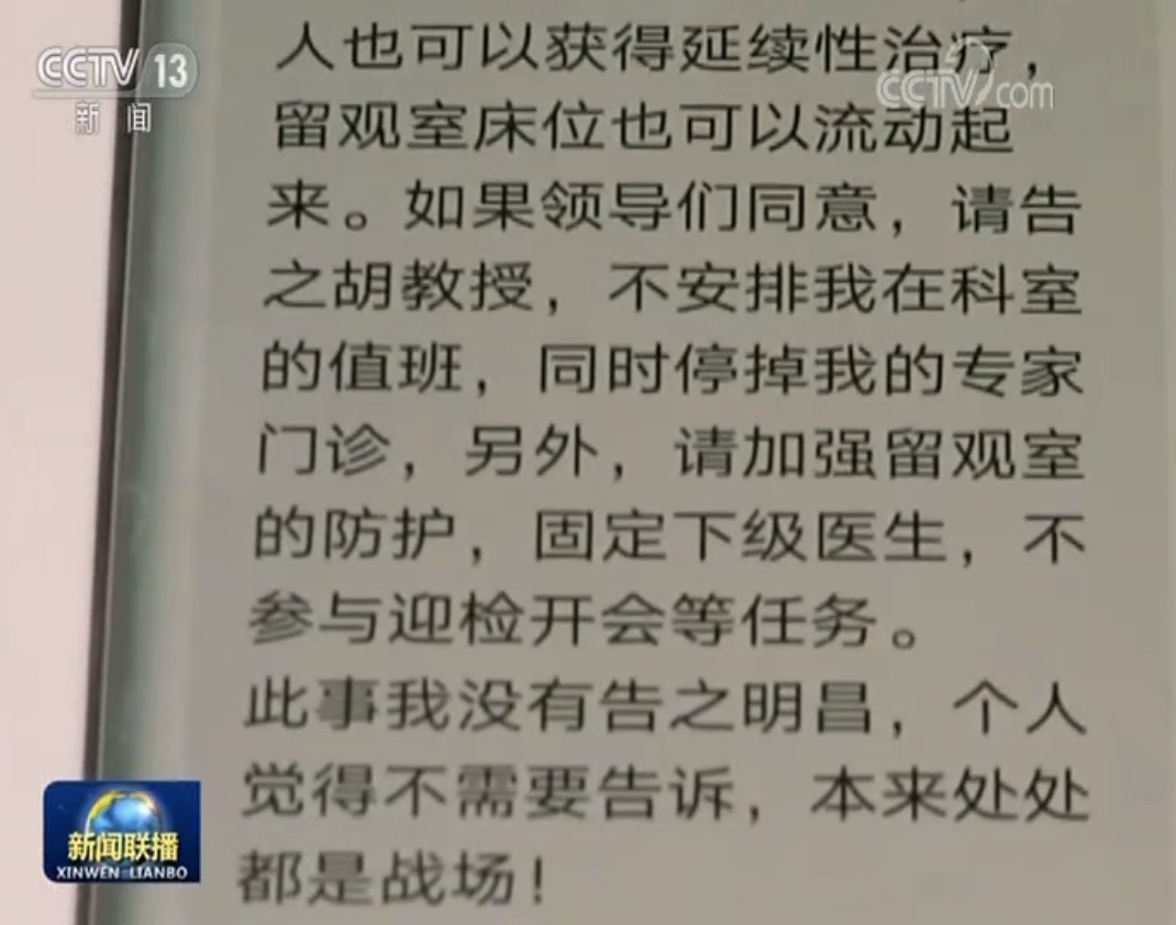 “此事我沒有告知明昌。個人覺得不需要告訴,本來處處都是戰場!”這是武漢大學人民醫院呼吸與危重癥醫學II科黨支部書記張旃的請戰書,明昌是她的丈夫。作為一名曾經抗擊過非典的呼吸科醫生,她第一時間向醫院請戰。疫情發生以來,武漢大學人民醫院7000多名員工全部放棄春節休假,全情投入到抗擊疫情一線。隨著1月30日,該院東院區改造為新型冠狀病毒感染的肺炎患者集中收治點,他們的醫療救治任務更加繁重。而從1月18日至今,張旃始終在急診留觀室堅守。