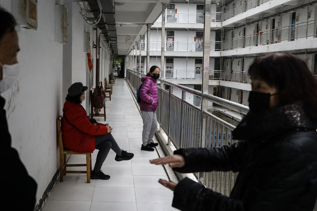 3月27日,武漢軟件工程職業(yè)學(xué)院康復(fù)驛站,等待離開的康復(fù)隔離觀察者。中青報·中青網(wǎng)記者 趙迪/攝
