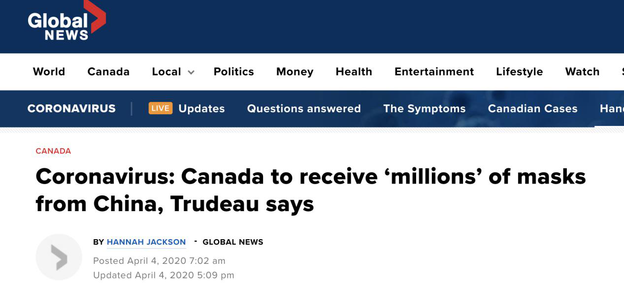 他相信加拿大還是會獲得抗擊疫情所需的醫療物資。3M公司已表明,會繼續向加拿大等地交付訂單。