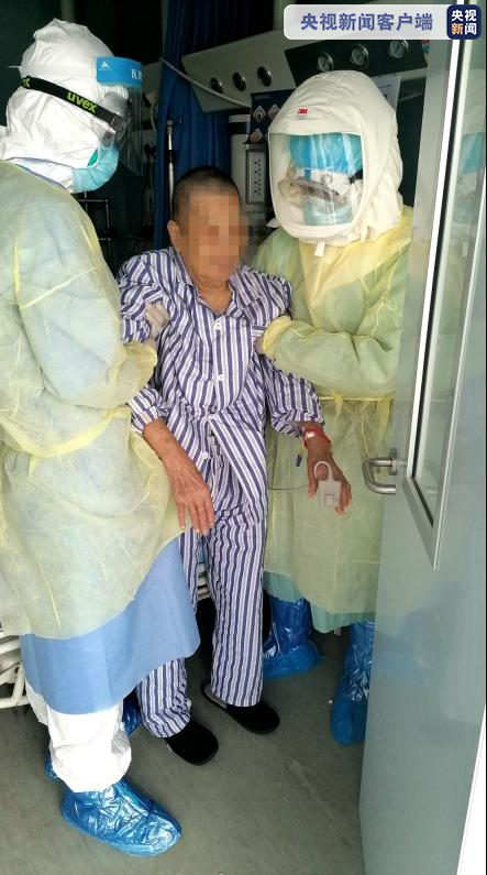 4月3日,余奶奶在醫(yī)護(hù)人員的鼓勵(lì)和攙扶下第一次下床站起來(lái)了。