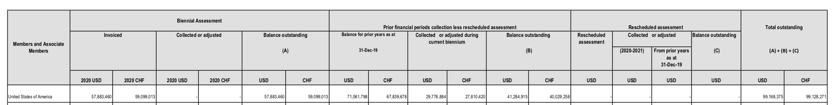 △世衛(wèi)組織會員國分?jǐn)倳M(fèi)概覽(截至2020年3月31日)部分截圖(來源:世衛(wèi)組織官網(wǎng))