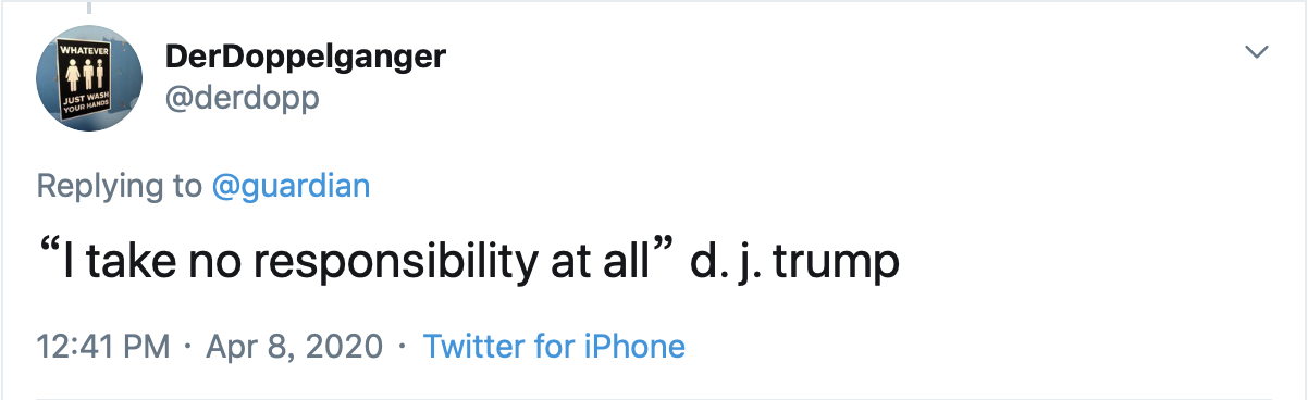 網(wǎng)民:“特朗普:‘我不承擔(dān)任何責(zé)任。’”↓↓↓