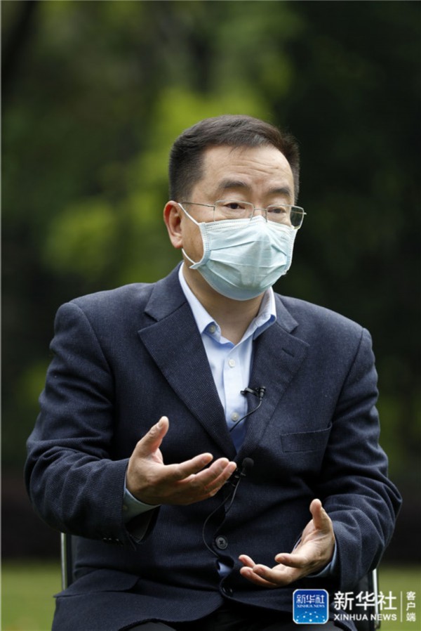 ↑中國疾控中心衛生應急中心主任李群接受采訪(4月10日攝)。新華社記者 沈伯韓 攝