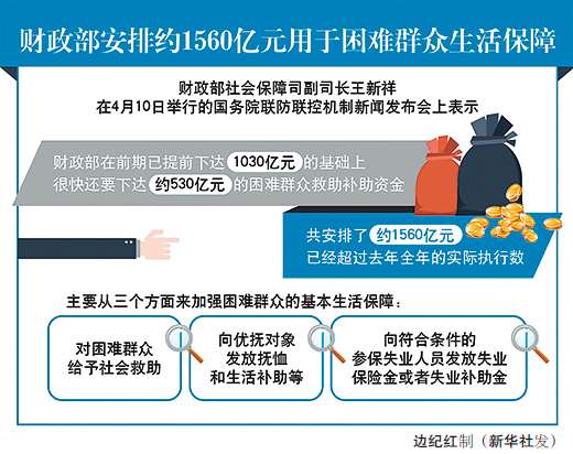 財政部社會保障司副司長王新祥介紹,財政部在前期已經提前下達1030億元的基礎上,很快還要下達約530億元的困難群眾救助補助資金,這兩部分加起來,一共安排了1560億元,已經超過去年全年的實際執行數。
