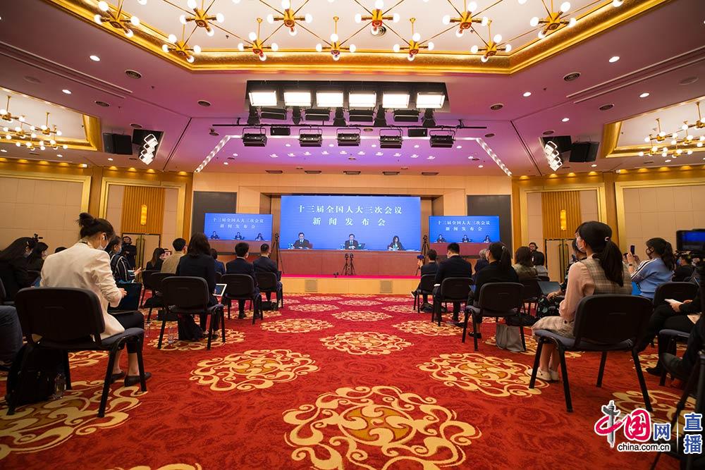 十三屆全國人大三次會議于5月21日(星期四)21時40分在人民大會堂新聞發布廳舉行新聞發布會,由大會發言人張業遂就大會議程和人大工作相關問題回答中外記者提問。 中國網張若夢攝影