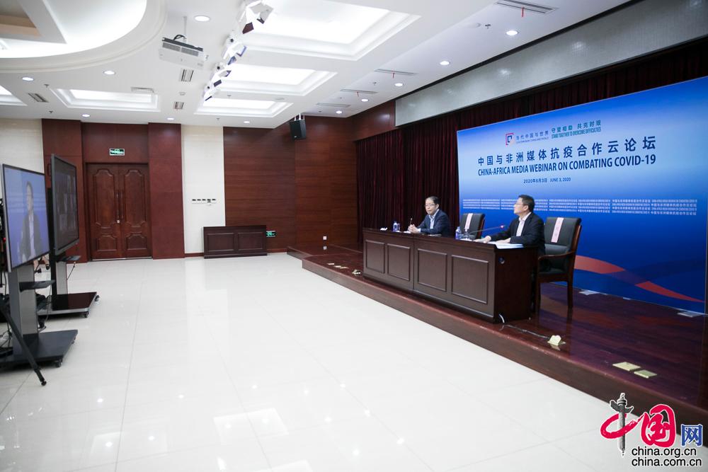 守望相助,共克時(shí)艱”中國與非洲媒體抗疫合作云論壇主會(huì)場(chǎng)。中國網(wǎng)記者 董寧 攝影