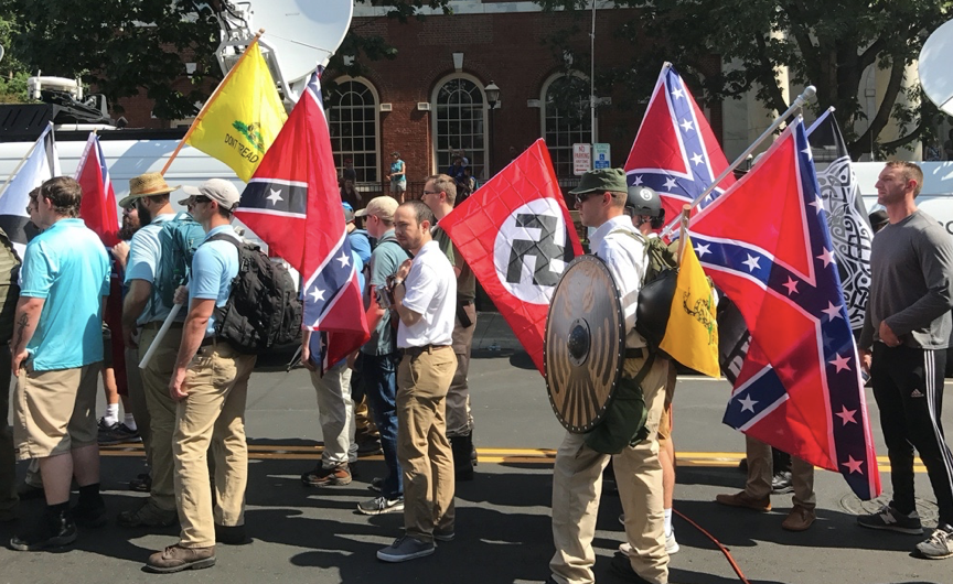 示威者公開、大量、密集使用納粹和三K黨的標(biāo)識(shí)和口號,為幾十年來美國乃至整個(gè)西方所罕見,震動(dòng)了美國社會(huì)。