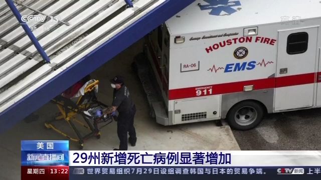 據(jù)美國有線電視新聞網(wǎng)援引約翰斯·霍普金斯大學(xué)的數(shù)據(jù)報(bào)道,目前美國有29個(gè)州的平均單日新增死亡病例比此前一周至少增加了10%。當(dāng)?shù)貢r(shí)間29日公布的數(shù)據(jù)顯示,包括目前疫情最為嚴(yán)重的加利福尼亞州、佛羅里達(dá)州和得克薩斯州在內(nèi)的美國多州單日新增死亡病例數(shù)再次刷新疫情暴發(fā)以來的最高值。