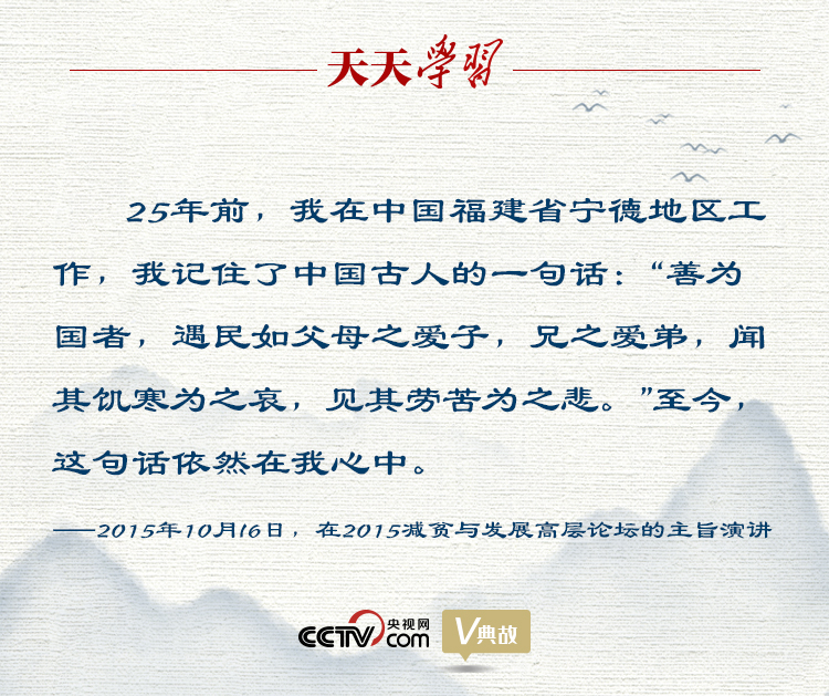 2015年10月16日,在減貧與發展高層論壇主旨演講中,習近平主席深情回憶——