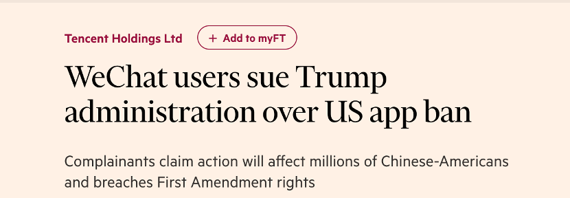 外媒:美國(guó)微信用戶向特朗普政府提起訴訟!
