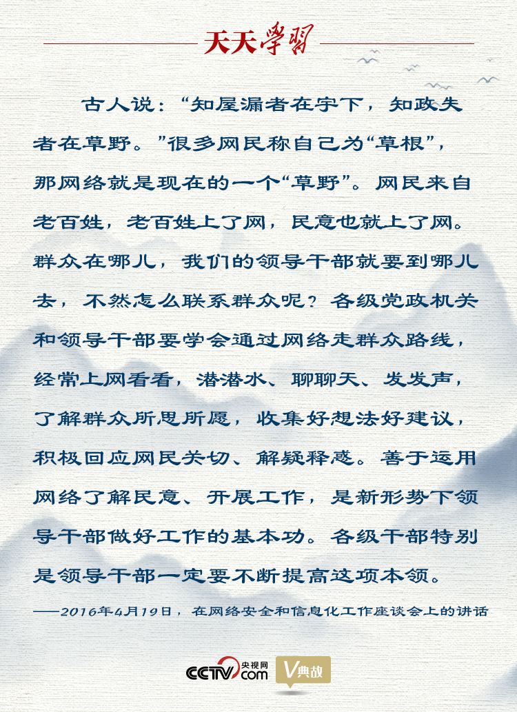 改革開放以來,民生日益改善,民聲表達渠道逐漸增多。互聯網的出現,為立體交互式的、官民互動式的扁平化管理提供了手段和途徑。2016年4月19日,在網絡安全和信息化工作座談會上,習近平總書記又一次引用了王充的這句話。他說——