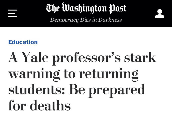 當耶魯大學宣布打算在秋季學期重啟線下教學時,該校心理學教授勞里·桑托斯對學生們發(fā)出預警:返校可能會帶來“生死攸關(guān)的后果”。