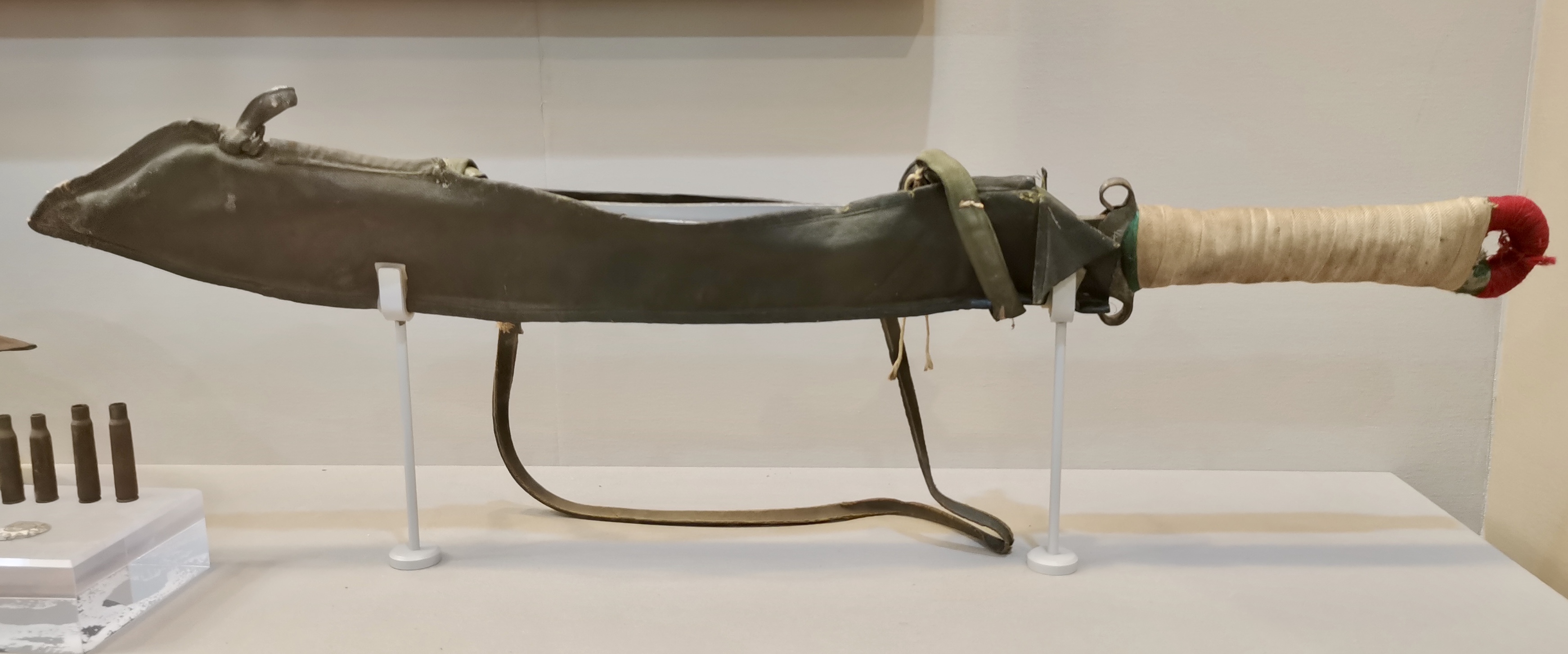 △第29軍士兵在盧溝橋抵抗日軍時使用過的大刀。(總臺央視記者范凱拍攝)