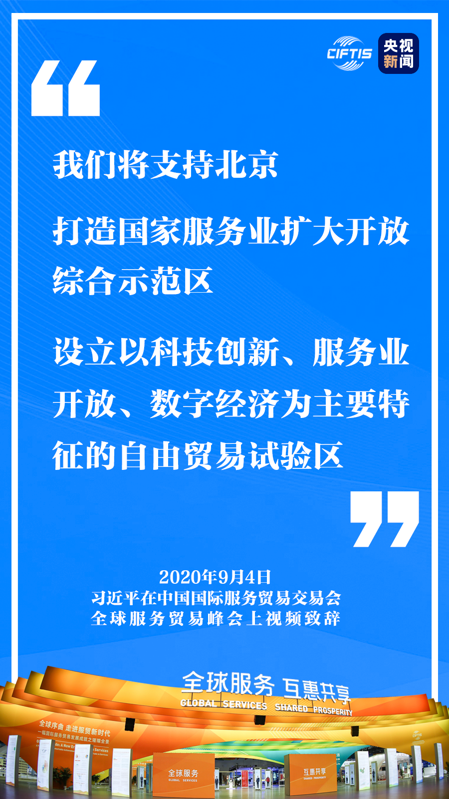 中國克服重重困難,舉辦這樣一場重大國際經貿活動,就是要同大家攜手努力、共克時艱,共同促進全球服務貿易發展繁榮,推動世界經濟盡快復蘇。