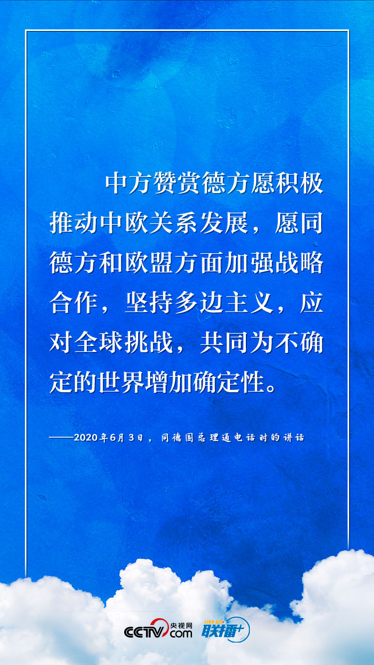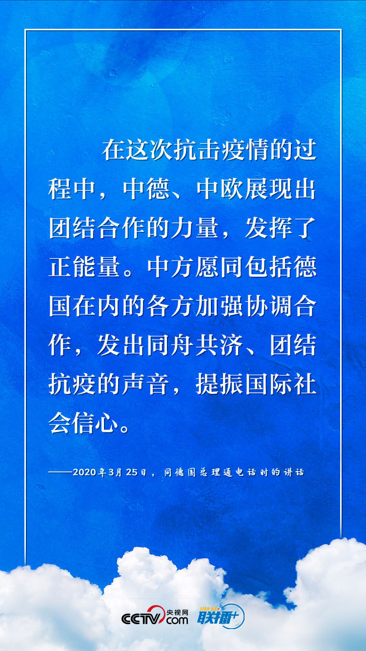 聯(lián)播+新冠肺炎疫情暴發(fā)以來,中國和德國、歐盟相互支持、相互幫助。習近平主席多次與德歐領(lǐng)導人開展“云外交”,闡明加強合作的重要性。