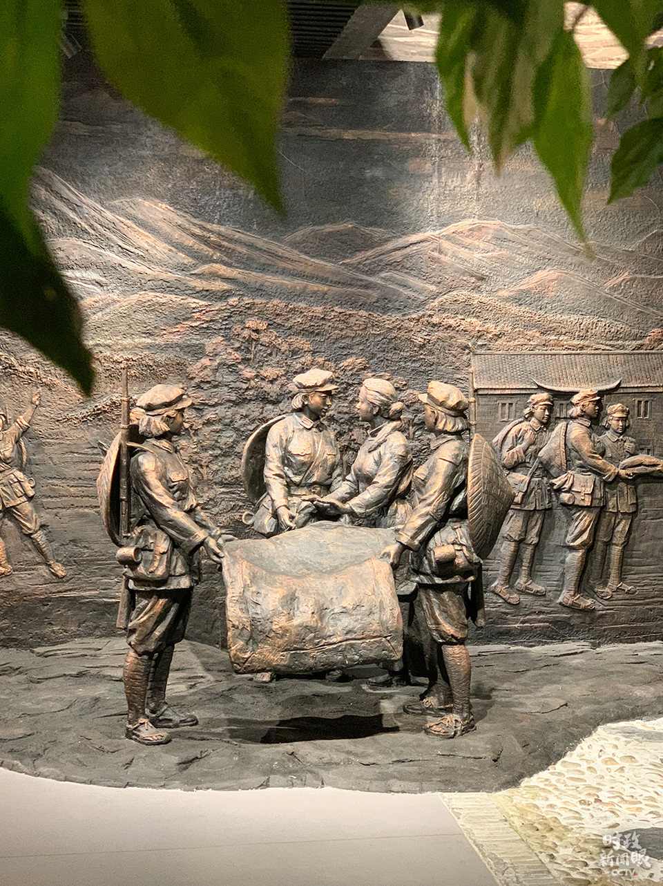 △“半條被子的溫暖”專題陳列館內的主題雕塑。(總臺央視記者邢彬拍攝)
